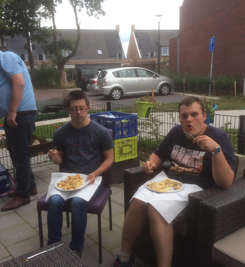 Roland kreeg als cadeau dat Jack en Carla een keer pannenkoeken zouden komen bakken.En dat was op woensdag 14 Augustus.