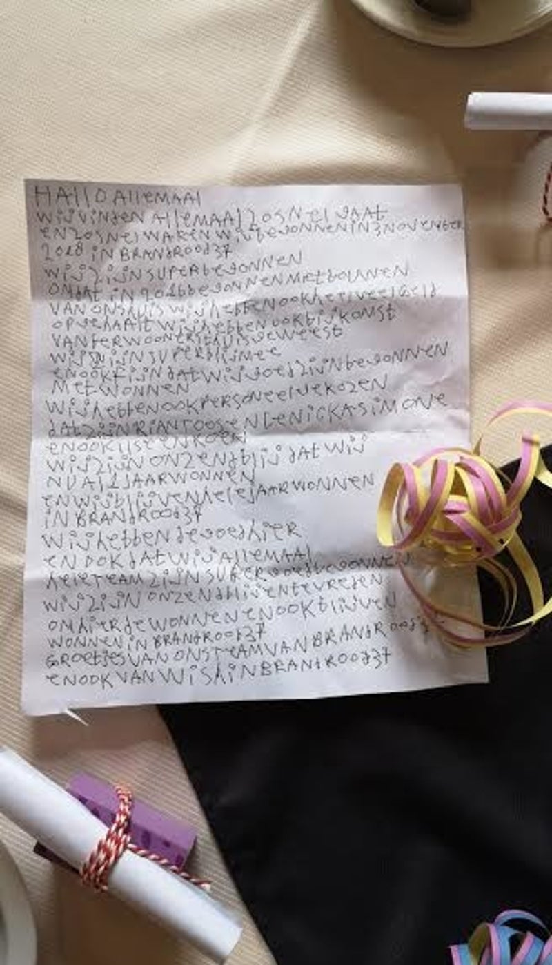 Nu zijn we een jaar verder. Veel is al bereikt en het allerbelangrijkste dat de bewoners zich thuis voelen. Het is hun huis. “Brandrood 37 daar wonen wij”