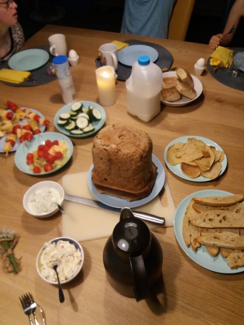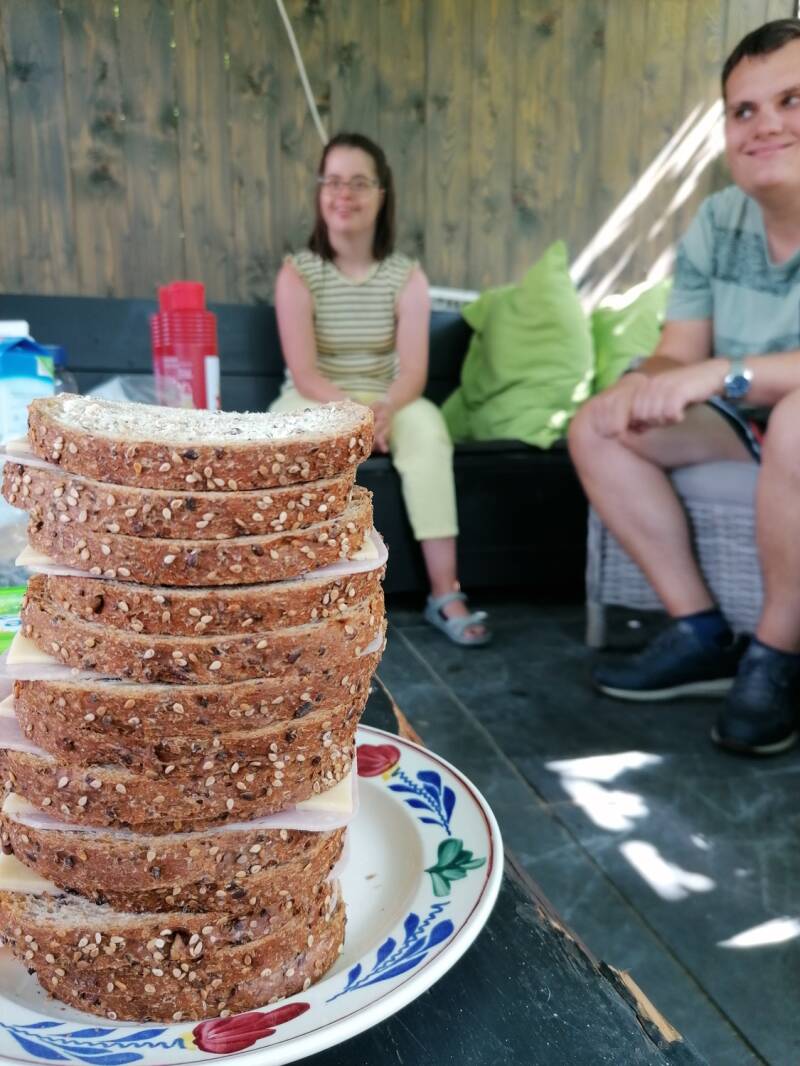 En dan die stapel boterhammen. tosti's, heerlijk smullen.
